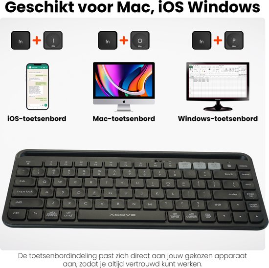 Op zoek naar een tablet toetsenbord bluetooth? Werk slimmer met deze draadloze toetsenbord geschikt voor iPad. Met de ingebouwde houder zet je je tablet of telefoon direct in de perfecte kijkhoek voor typen. Dankzij de stille toetsen en het ergonomische ontwerp typ je comfortabel zonder storende geluid. Verbind tot 3 apparaten tegelijkertijd met deze draadloos toetsenbord.